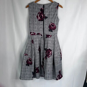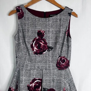 Roz & Ali Sleeveless Black Floral Rose Print Fit & Flare Skater Dress Size 2