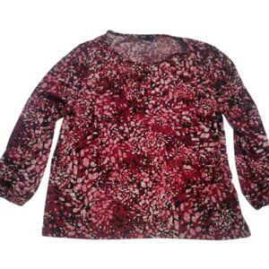 Roz & Ali Stretch Blouse Red Abstract Round Neck Top, Size 1X