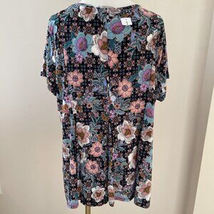 Roz & Ali Swing Tunic Top Womens 2X Colorful Floral V Neck Stretch Whimsical