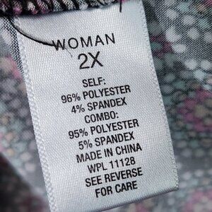 Roz & Ali Top Womens Plus Size 2X Black Geometric Short Sleeve Zipper Detail