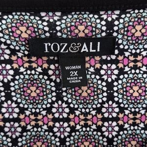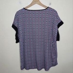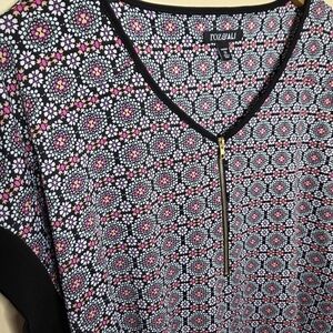 Roz & Ali | V-Neck Medallion Short Sleeve Top with Gold Zipper Detail Size 2X