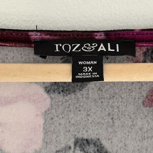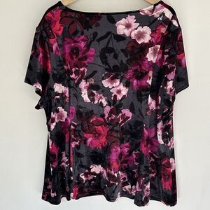 Roz & Ali Velvet Top Size 3x V-Neck Floral Short Sleeve Shirt Jewel Tones
