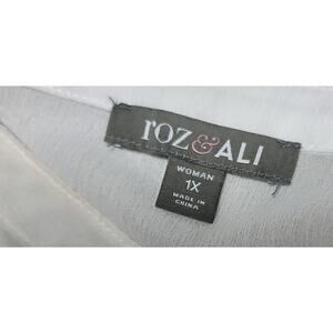 Roz & Ali White Button Up Pleated Bodice Lace Hem Top 1X Plus Lightweight Sheer