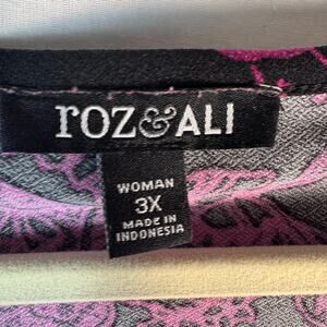 Roz &Ali Woman Plus 3X Black/Purple Floral Top Blouse Slit Sleeve Gold Button