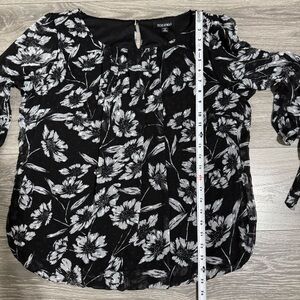 Roz & Ali Women Black & White Floral Lined 3/4 Sleeve Relaxed Fit Blouse Size 1X