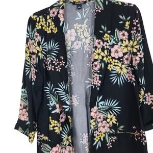 Elevate your wardrobe with the Roz Ali Black Multicolor Floral Open Front Blazer NWT S.