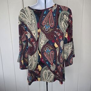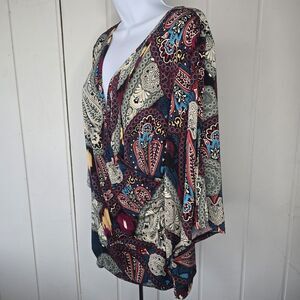 Roz & Ali Women's 14/16 Paisley Wrap Front Blouse Flutter 3/4 Sleeves Deep Vneck