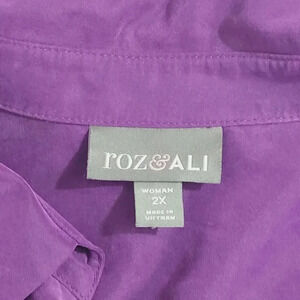 Roz & Ali Women's 2X Purple Button-Up Blouse With Tab Sleeve 28CT