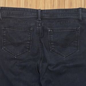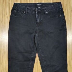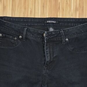 Stylish and versatile black jeans perfect for any occasion. Comfortable fit with a sleek design. A little faded. Front pockets sewn closed. Still soft and stretchy.