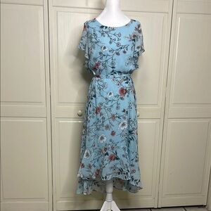 Roz & Ali Women’s Blue Floral High Low Flutter Self Tie Summer Dress Sz 14