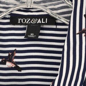 Roz & Ali Womens Button-Up Striped Blouse humming bird Print blue size XL