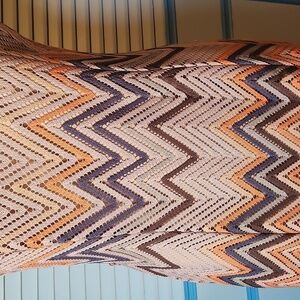Color/Pattern: Multicolor chevron print featuring shades of brown, peach, and cream.