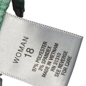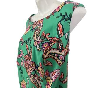 The Roz & Ali Women's Green Paisley Floral Stretch Sheath Knee Length Dress in size 18 is a stylish and versatile piece perfect for various occasions. This sleeveless dress features a round neckline, zip closure, and is made from a comfortable polyester and spandex blend. The dress is adorned with a floral pattern, stretch material, and a knee-length design, making it a flattering and fashionable choice for summer, fall, and spring seasons. Made in Vietnam, this dress is machine washable for easy care and maintenance. Perfect for parties, casual outings, or business events, the Roz & Ali dress combines style and comfort effortlessly.