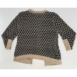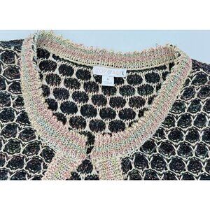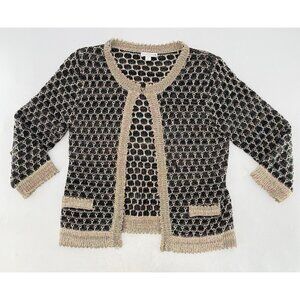 Roz & Ali Women’s Knit 3/4 Sleeve Metallic Weave Cardigan Sweater Sz M Preppy