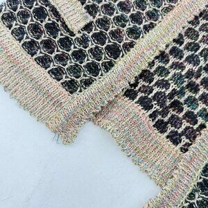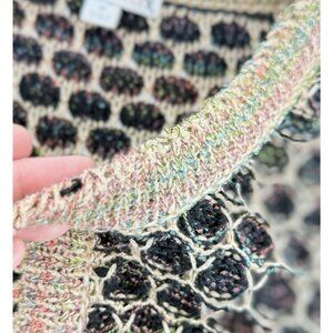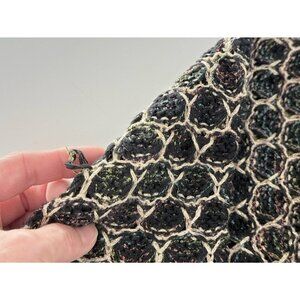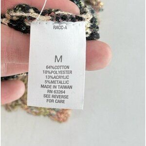 The Roz & Ali Women’s Knit 3/4 Sleeve Metallic Weave Cardigan Sweater in size M is a versatile and stylish garment suitable for various occasions. This geometric tight-knit sweater features a round neckline and open front, making it easy to layer over different outfits. Made from a blend of polyester, metallic, cotton, and acrylic, this sweater is machine washable and perfect for the winter, fall, and spring seasons. With a preppy and event-themed design, this cardigan from Roz & Ali is a must-have in any woman's wardrobe. A couple pulls in fabric. Please see photos for about a representation. Please feel free to ask any questions.