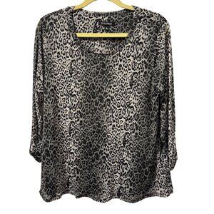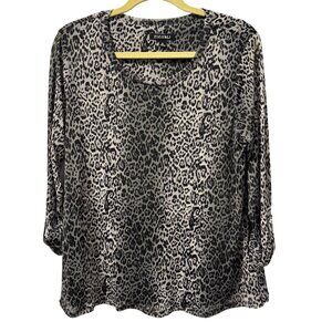 Roz & Ali Womens Leopard Print Blouse Sz XL Polyester Spandex