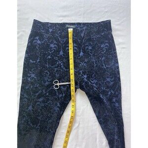 The Roz & Ali Women's size Medium Blue Black Floral Burnout Pants are stylish and comfortable pants designed for women. Featuring a floral pattern in black with velvet accents, these pants have an elastic waist for added comfort. Made from a blend of polyester and spandex, these pull-on pants have a straight leg style and ankle length, making them a versatile and fashionable choice for everyday wear. Perfect for adding a touch of fun and style to any outfit, these pants are a must-have for any woman's wardrobe.