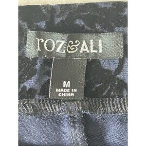 Roz & Ali Womens Medium Blue Black Floral Burnout Pants