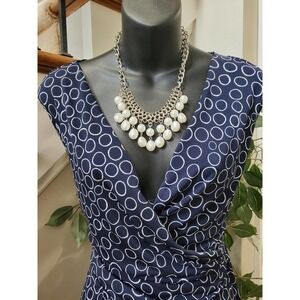 Roz & Ali Womens Navy Blue Circles Sleeveless Asymmetrical V Neck Jumpsuit 20