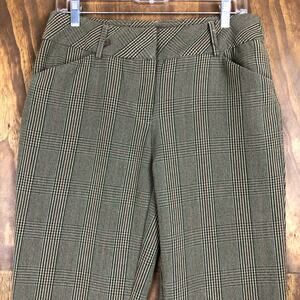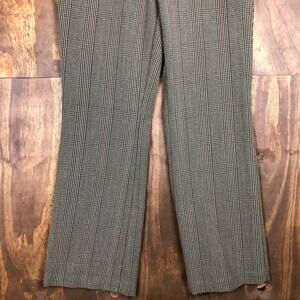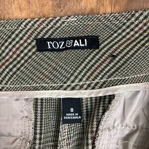 Roz & Ali Womens Pants Brown Green Checkered Plaid Workwear High Rise Stretch 8