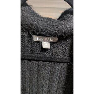 Roz & Ali Womens Petite XL Black Sweater Cardigan Felted Wool Art-to-Wear Artsy
