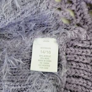 Roz & Ali Womens Plus Size 14/16 Purple Fuzzy Patterned Sweater Vest Cardigan