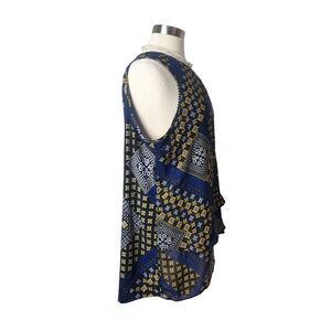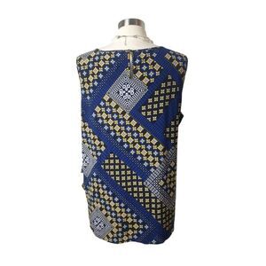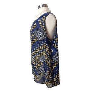 Roz & Ali Womens Plus Sleeveless Blouse 2X Blue Artsy Geometric Keyhole Boho