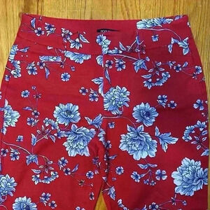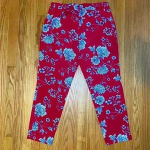 Roz & Ali Women's Red Blue Floral Flat Front Stretch Cropped Pants Size 6