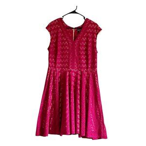Roz & Ali Women's Size 16 V Neck Pink Crochet Knit Skater Dress Party Wedding