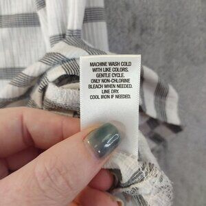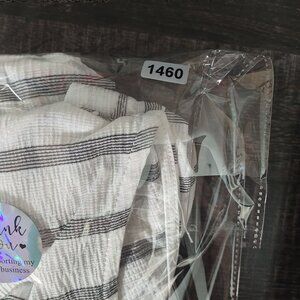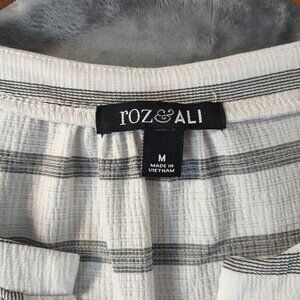 This Roz & Ali women’s sleeveless tunic top in size Medium features a crisp white base with vertical and horizontal gray stripes for a chic, elongating effect ⚪️⚫️. Designed with a pintuck front, split neckline, and flared peplum-style hem, this lightweight woven blouse blends casual elegance with everyday comfort. Perfect for workwear, career outfits, or pairing with jeans for weekend style.