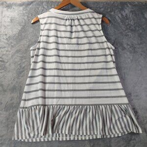 Roz & Ali Womens Sleeveless Tunic Top M White Gray Striped Pintuck Peplum Hem