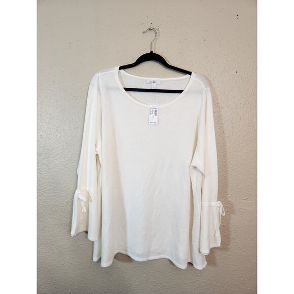 Roz & Ali Women's White Tie Bell Long Sleeve Scoop Neck Sweater Size 3X NWT