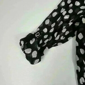 Roz & Ali Blouse Black White Polka Dots Sheer Long Sleeve Button Up