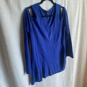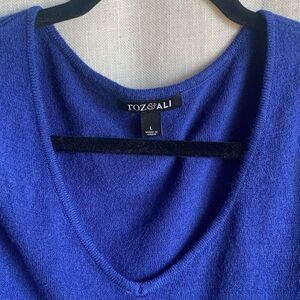Roz & Ali Womens Large Blue Cutout Shoulder Long Sleeve V-Neck Sweater Cozy Soft