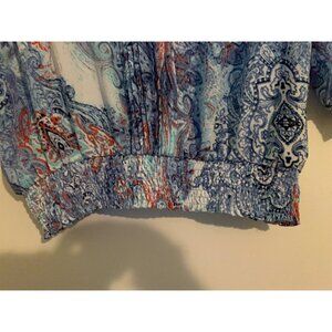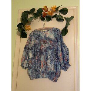 Roz & Ali XL Boho Paisley Blouse Womens Peasant Top Sheer 3/4 Sleeve Blue Orange