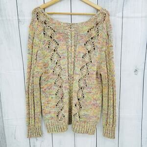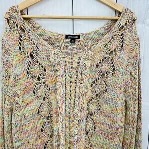 Roz & Ali XL Green Multi Pastel Knit Sweater Long Sleeve Boat Neck Pullover