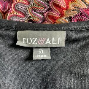 Roz & Ali XL Top Blouse Multicolor Wavy Pattern Smocked Waist Tie Neck Bohemian