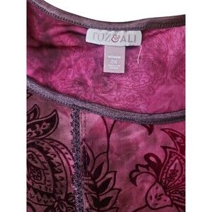 Roz & Ali Y2K Whimsygoth Floral Paisley Blouse Womens 2X Purple Stretchy Tie Dye