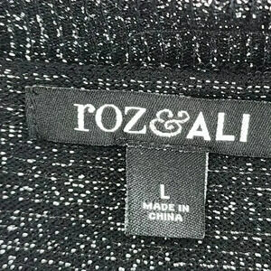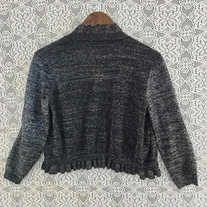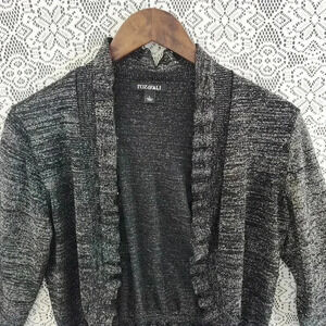 Roz & Ali open front ruffle sweater cardigan black shimmer cropped L