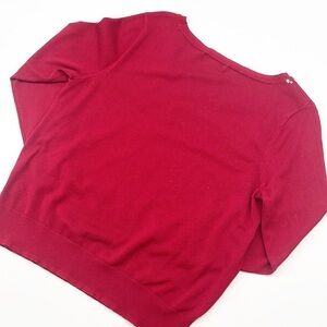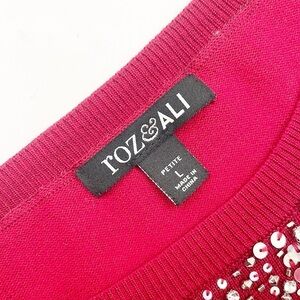 Roz & Ali red long sleeve knit sweater w/silver rhinestone and sequin bow accent