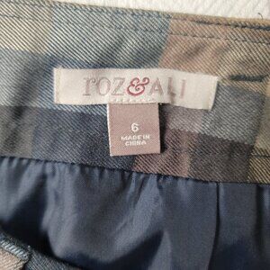 Roz & Ali skirt plaid lined back zip belt loops women's size 6 brown taupe black