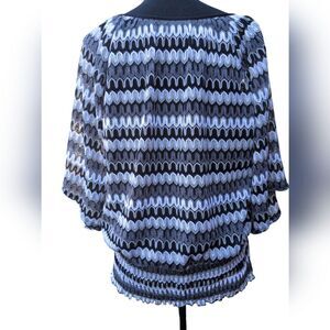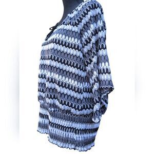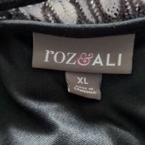 Roz & Ali sparkle "Cute As Can Be" Black, White And Gray Relaxed Blouse Sz XL