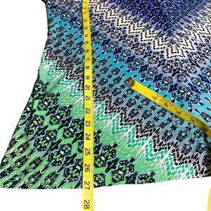 Roz & Ali tunic top polyester spandex blue green abstract print 2X soft