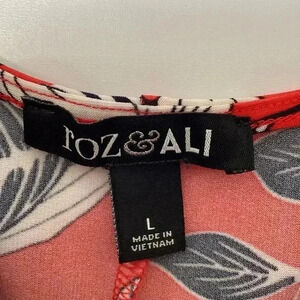 Roz & Ali, v-neck, cap sleeve, red/blk/wht, floral Size Large Blouse Top