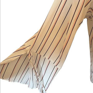 Roz & Ali white with pink/black pin stripes bell sleeve button down top size 1X