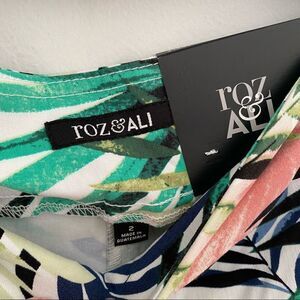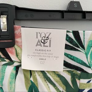 Roz + Ali Classic Fit Tropical Print Ankle Pull On Pants