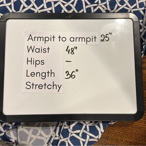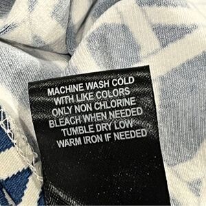 Stylish dress with a navy and white geometric pattern. Perfect for casual outings.