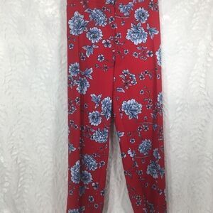 Red floral Hawaiian print slacks pants trousers