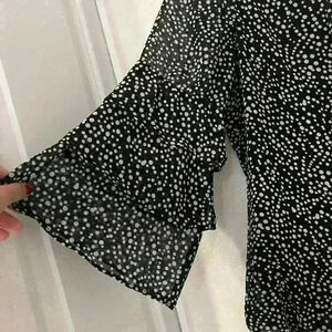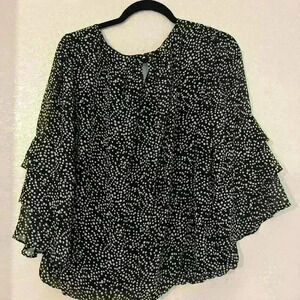 Has tiered flow sleeves, 3/4 quarter sleeve and bubble hem