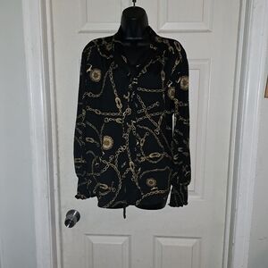 Roz&Ali woman chain Print blouse ties At neck size large 5/$25